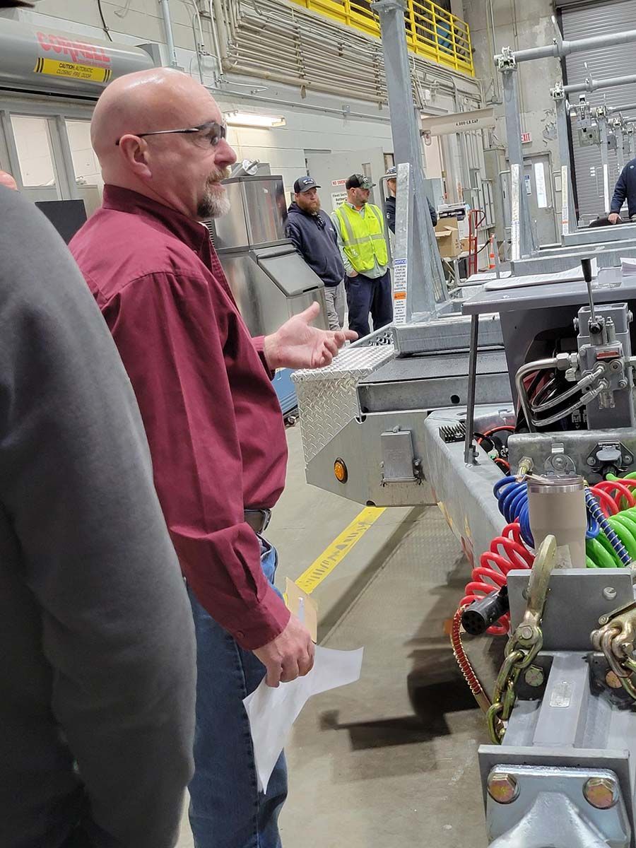 Last month, MGS delivered two triple reel turret trailers to Duke Energy's Durham Garage. One of the two trailers was supplied with a newly configured on-board hydraulic system for cable retrieval. Cory McQuate and Kevin Antol made the trip from PA to do an in-service training on the two units. The training was well-attended and we got some new insight on what the changes we made will do to enhance the workers productivity and safety.